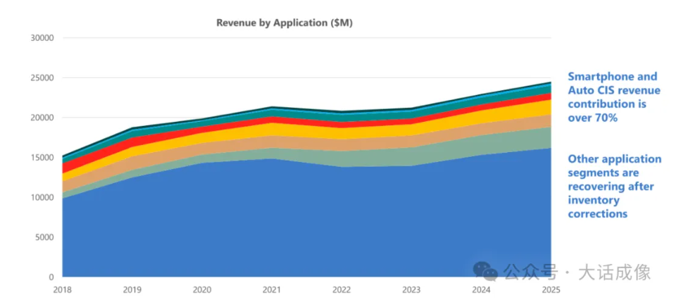 휴대폰 한 대에 탑재되는 이미지 센서의 수도 포화 상태에 이르러 전체 시장 기여도는 감소 추세를 보이고 있습니다.