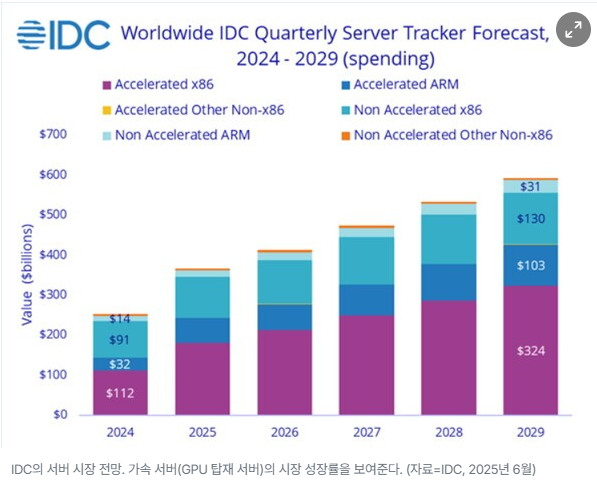- IDC가 발표한 2025년 3분기 세계 서버 시장 보고서에 따르면 사상 최고치인 1124억달러(약 165조원) 규모를 기록
